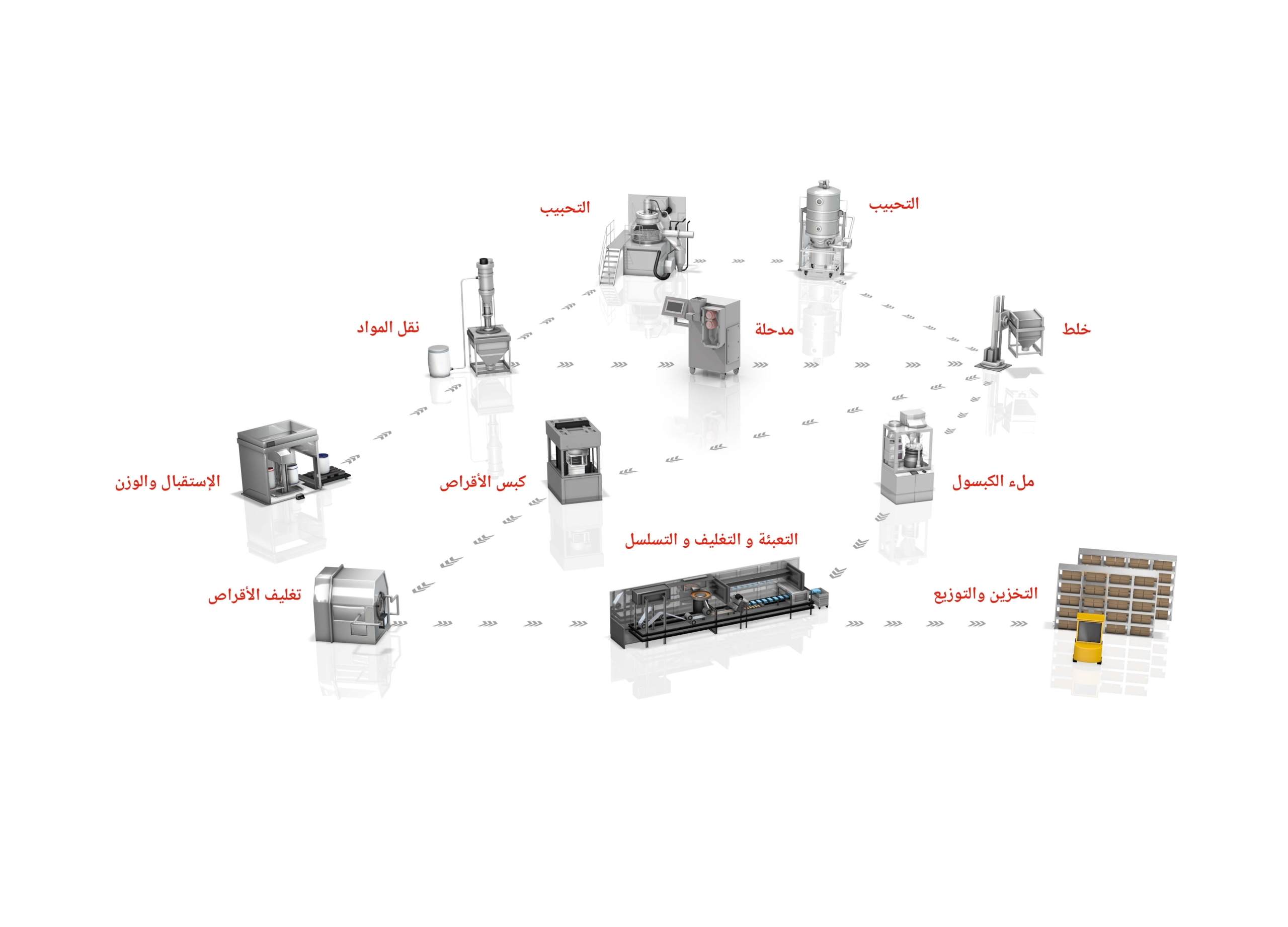 يتطلب إنتاج المستحضرات الصلبة الدوائية تقنيات ضمان المعالجة خالية من الغبار، وخلط المادة الفعالة بمواد السواغ فضلا عن الإشراف الدقيق على عملية المعايير لتحقيق مستوى عال لجودة المنتج. وهذا هو السبب في أننا نركز دائما على الطريقة المثلى لفاعلية سير العمل من حيث التكلفة والسلامة مع كل قطعة من المعدات من المعامل إلى المصانع التجريبية والإنتاج، وتوفير حل مخصص لجميع الاحتياجات الخاصة بك.