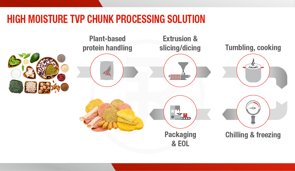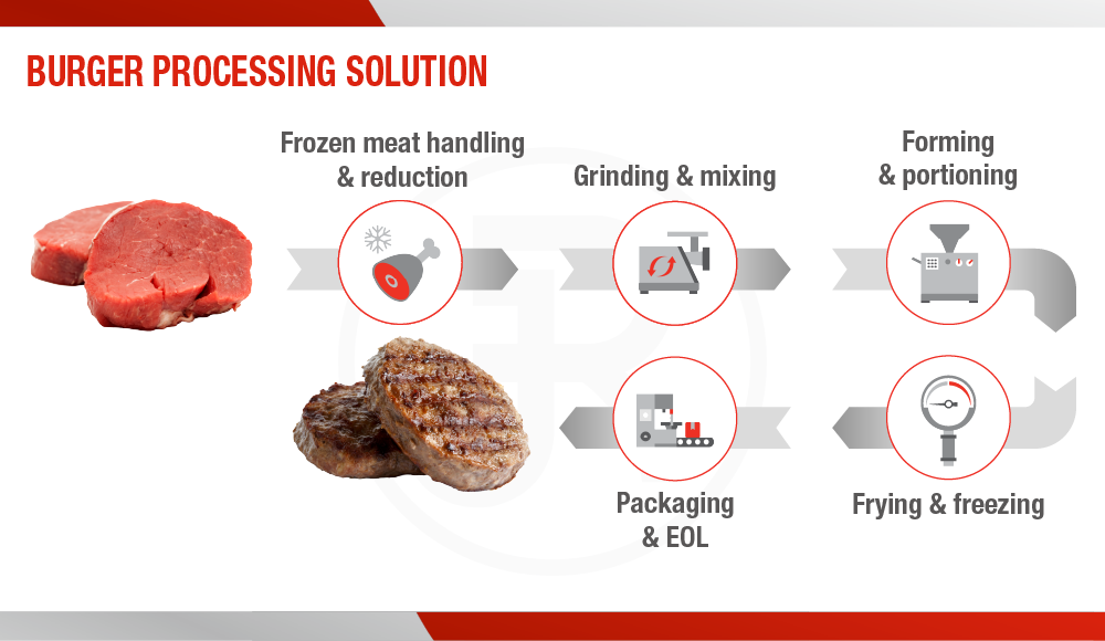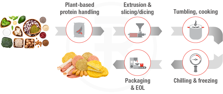 Supporting these markets requires processing technologies that address the functional differences between protein sources while maintaining efficiency, product quality, and uncompromising food safety. Our portfolio includes solutions designed to support both conventional animal protein processing and plant-based formulations, enabling reliable industrial production across these complementary protein segments.