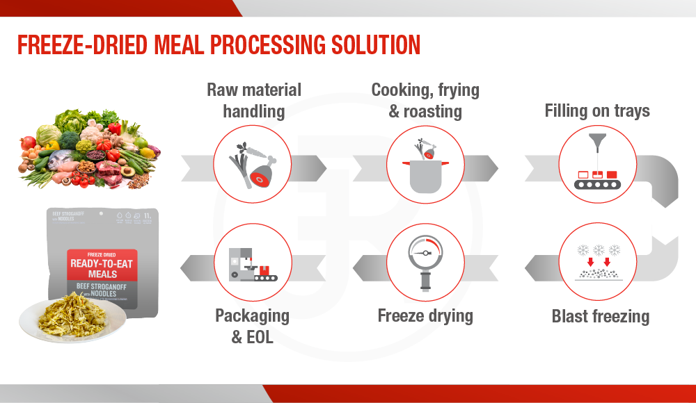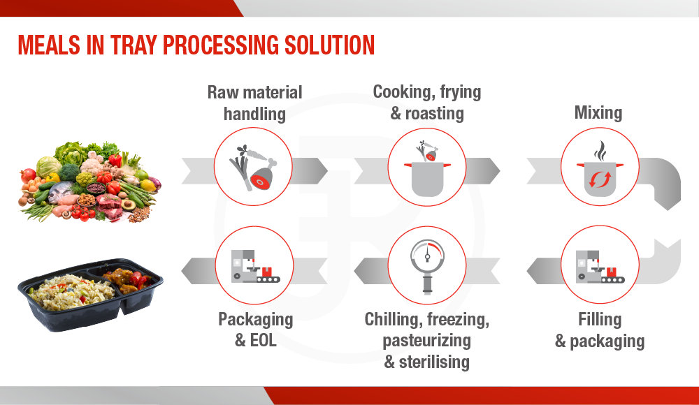 In ready-to-eat meal and convenience food production, industrial production must combine efficiency with product characteristics that consumers recognize and trust. Our comprehensive portfolio is designed to support consistent taste, recognizable ingredients, and high hygiene standards, enabling manufacturers to deliver convenient food products with stable quality and reliable food safety at scale.