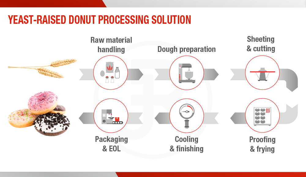 Our portfolio covers the key processing steps required in modern bakery and confectionary production – from dough preparation, lamination, fermentation, and baking in bakery applications to forming, cooking, cooling, and coating processes in confectionary production. These technologies ensure consistent product quality, reliable industrial performance, and efficient large-scale production across different production scales and diverse product categories.