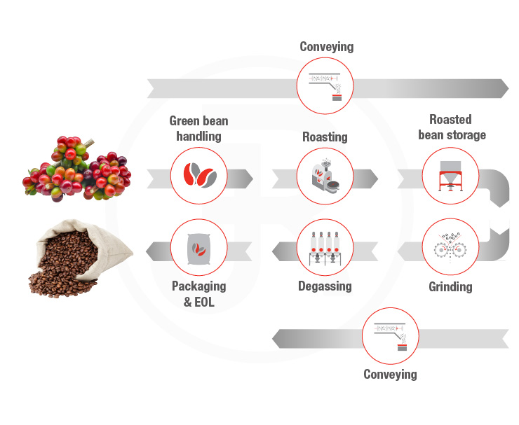 Processing requires precise mechanical and thermal treatment to develop aroma, flavor, and product consistency, from raw material handling through roasting, grinding, and ingredient preparation.
