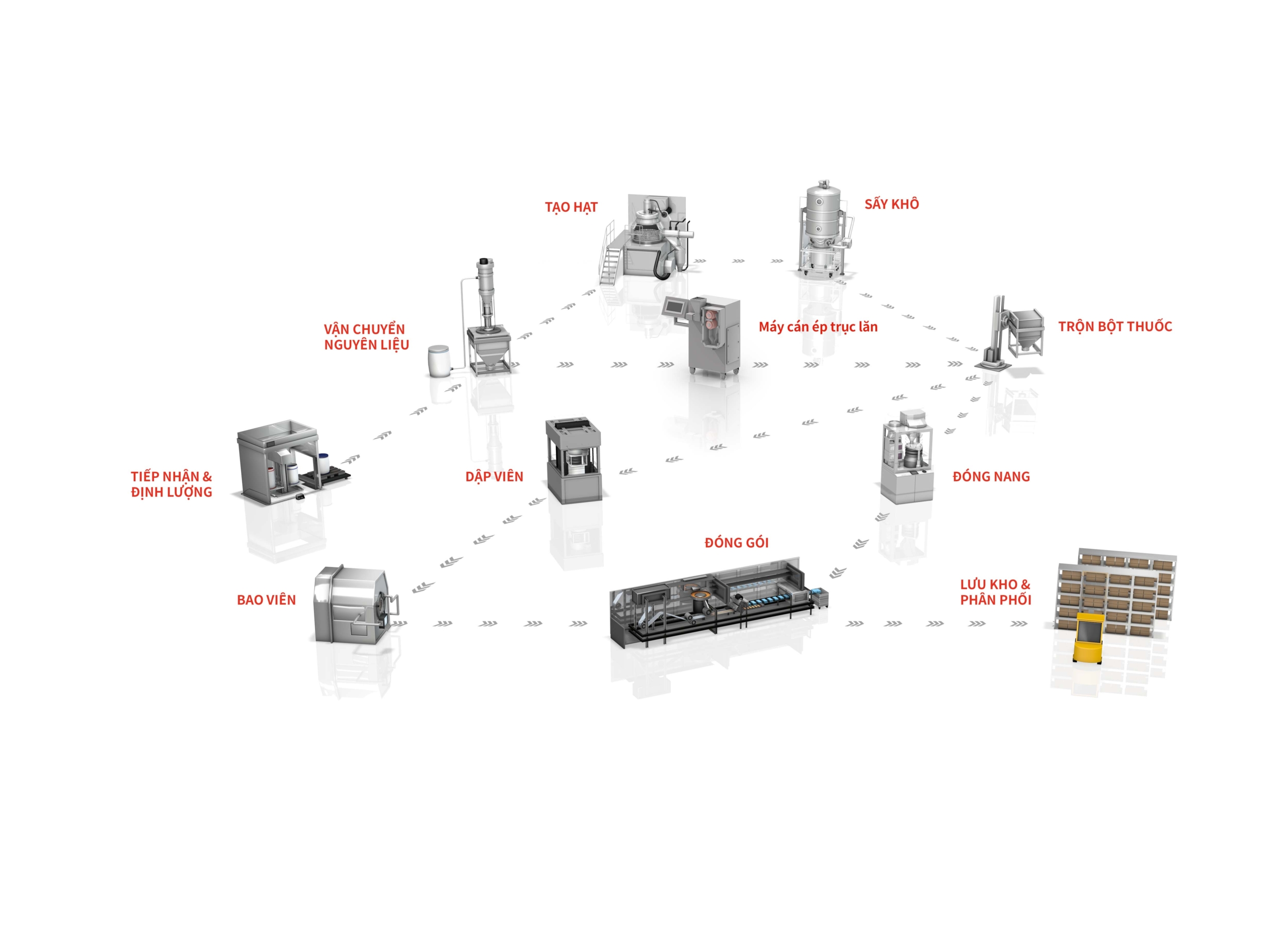 Sản xuất thuốc thể rắn yêu cầu các công nghệ đảm bảo quy trình xử lý không bụi, trộn đều và đồng nhất hoạt chất với các chất mang cũng như giám sát các tham số bào chế quan trọng để đạt được chất lượng sản phẩm ở mức cao liên tục.